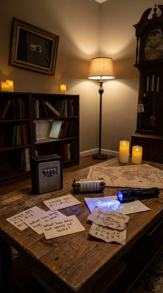 Hide riddles in drawers, set up number locks, and leave mysterious messages that lead to the next clue.