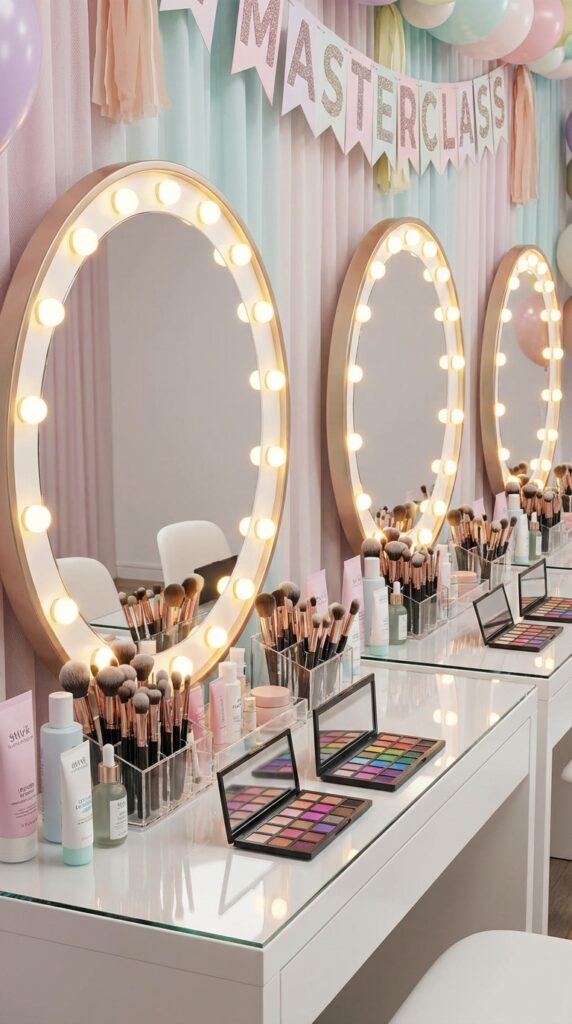 Beauty enthusiasts will adore a makeup expert class party that alters your space into a mini cosmetics studio.
