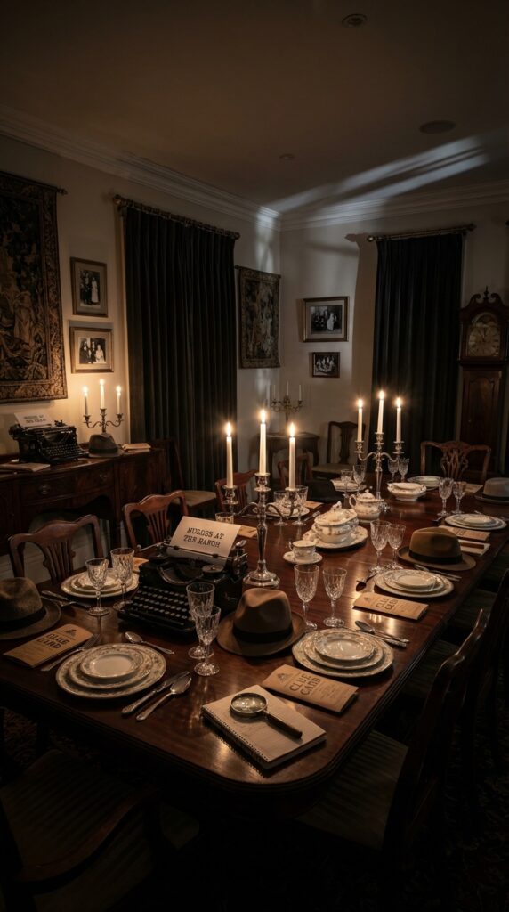 You’ll need to create mysterious clues, hide them around the house, and serve dinner while your friends solve the murder mystery.