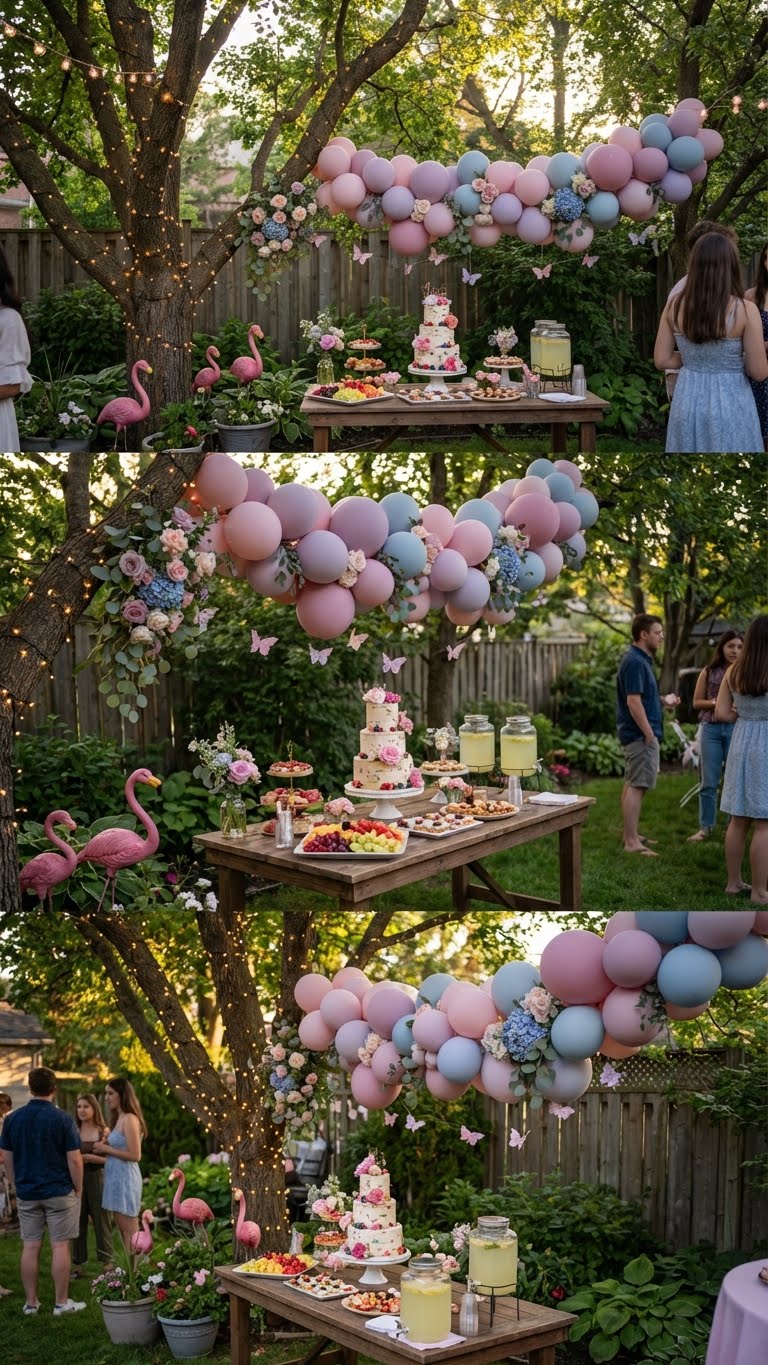 Create whimsical butterfly party decorations with pastel garlands and wing props to enhance the magical garden ambiance.