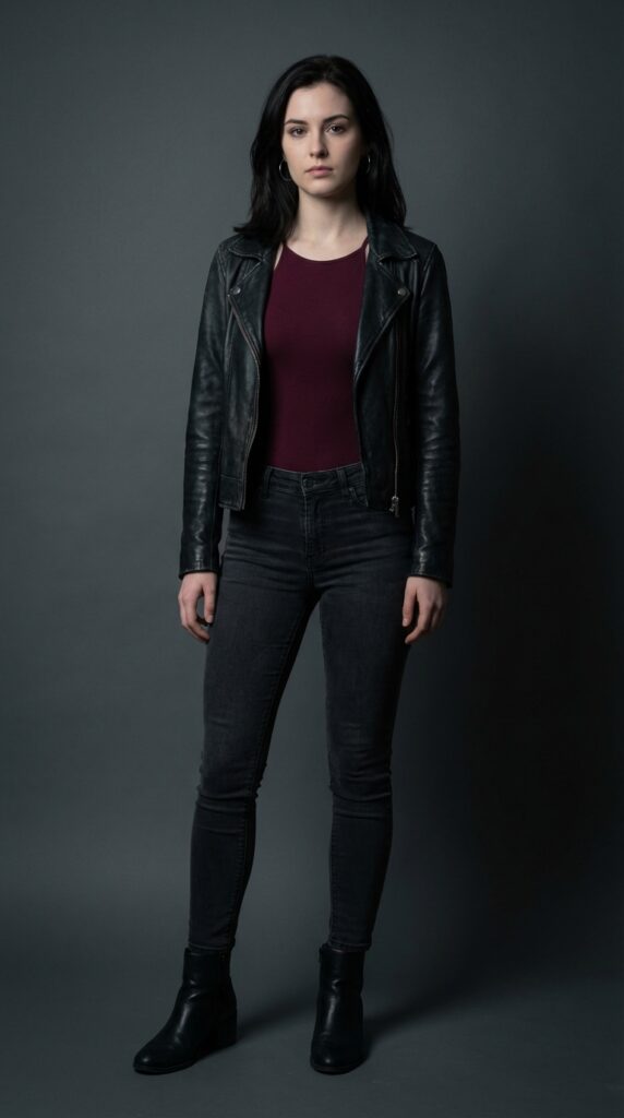 Pair this with dark skinny jeans and ankle boots for a grounded feel, or switch to a leather mini skirt if you’re feeling bold. The bodysuit keeps everything tucked and polished, while the jacket adds that rebellious touch every teen birthday outfit needs.