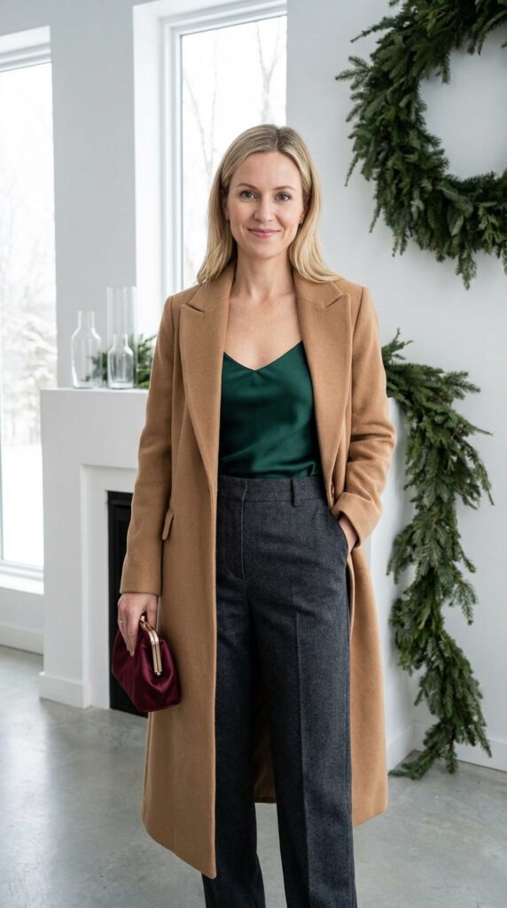 The beauty lies in the contrast of textures. Structured wool creates clean lines while silk adds fluid movement. I always choose high-waisted trousers that elongate my silhouette. Classy and fashionable birthday winter outfits can elevate the look for grown-up elegance.