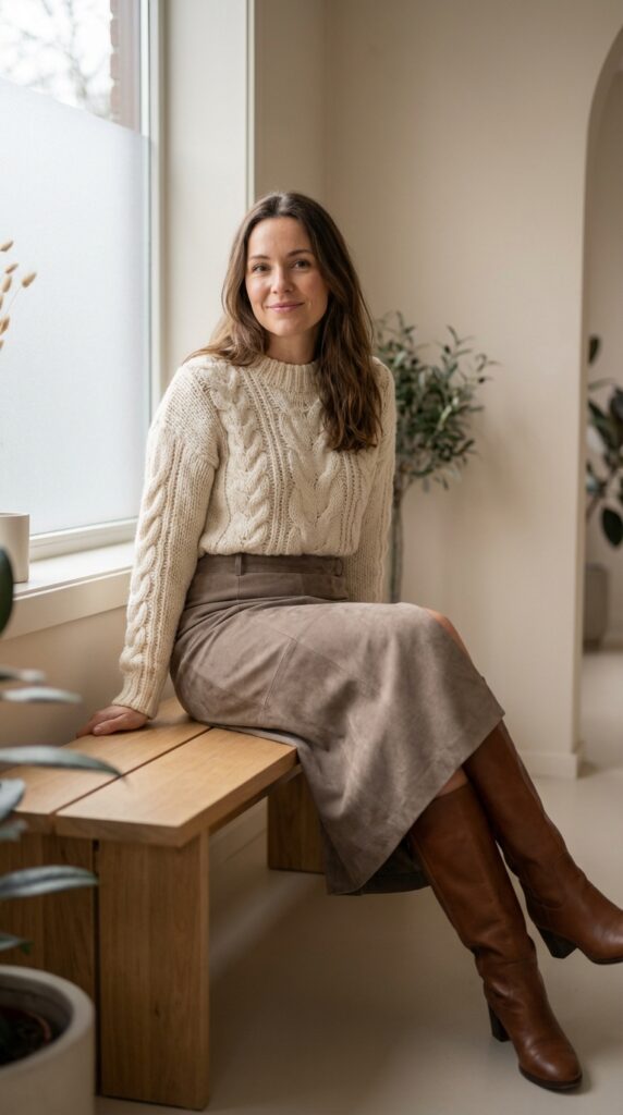 Comfort meets elegance when you pair a chunky knit sweater with a midi skirt for your 29th winter birthday celebration. This combination strikes the perfect balance between cozy and sophisticated—trust me, you’ll feel like you’re wearing pajamas while looking absolutely put-together.