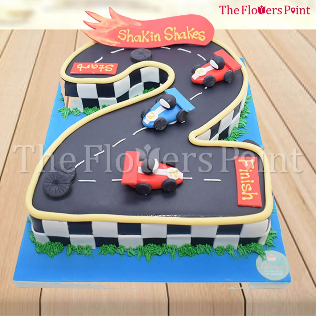 The cake’s dynamic design brings a sense of speed and adventure, making it an exciting centerpiece for a toddler’s birthday. It’s perfect for children who are fascinated by cars and racing.