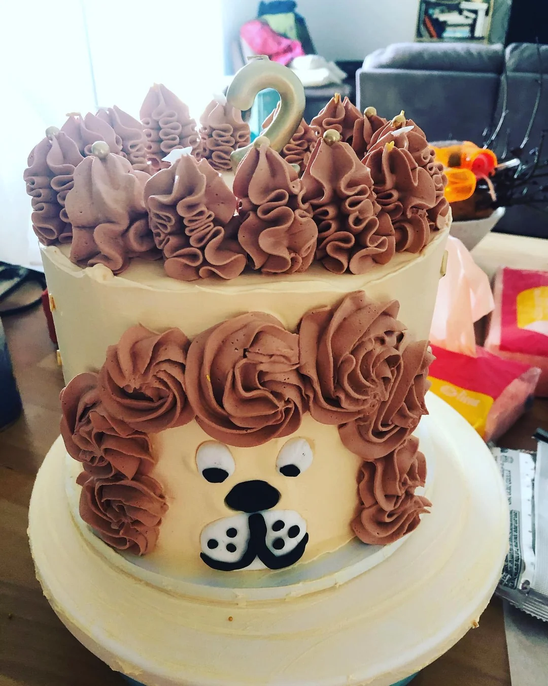 This adorable lion cake features a fluffy mane made from icing and a sweet lion face. The soft brown and white icing create a realistic yet fun look that will bring smiles to everyone at the party.