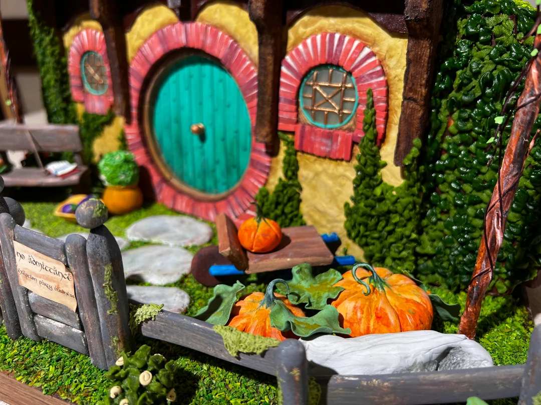 This cake features a miniature hobbit house surrounded by lush greenery, pumpkins, and a rustic wooden fence. The intricate details bring a fairytale-like atmosphere to the party, transporting guests to an enchanting world.