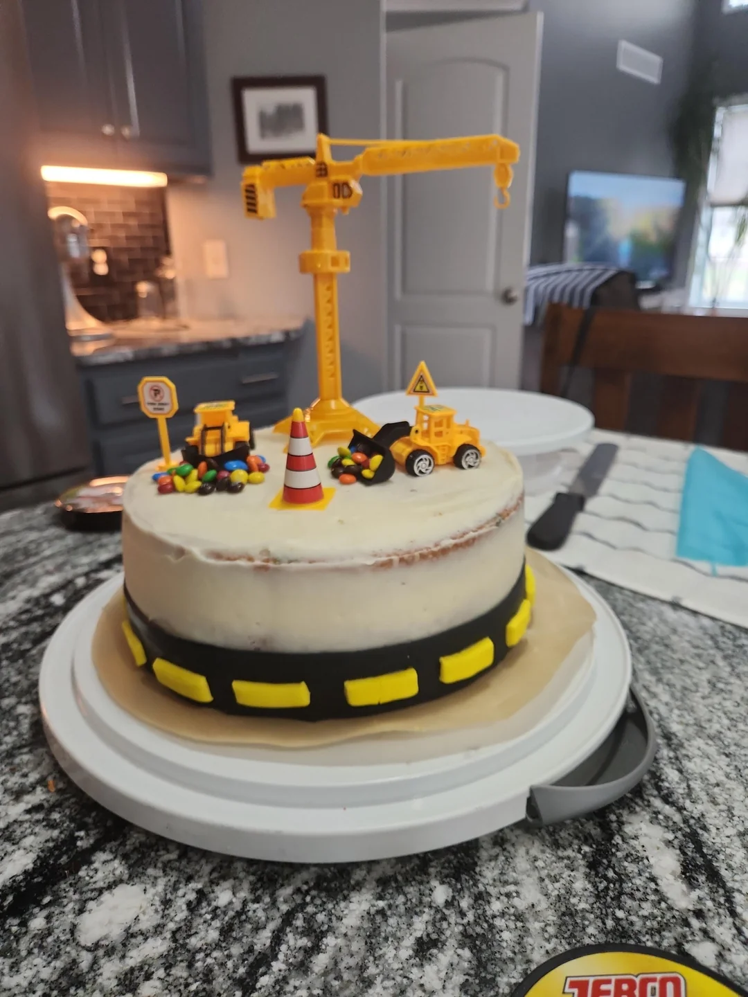 Why We Picked This Image: The construction theme adds an interactive element that will engage toddlers, making this cake perfect for those fascinated by trucks and building.