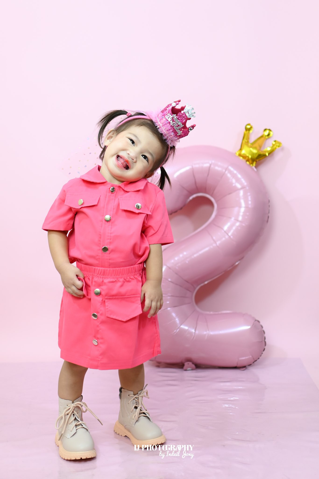 With the pink “2” balloon in the background and the joyful expression on her face, this outfit screams celebration. It’s a stylish and fun choice for parents who want to dress their baby girl in something both cute and comfortable for a birthday party.