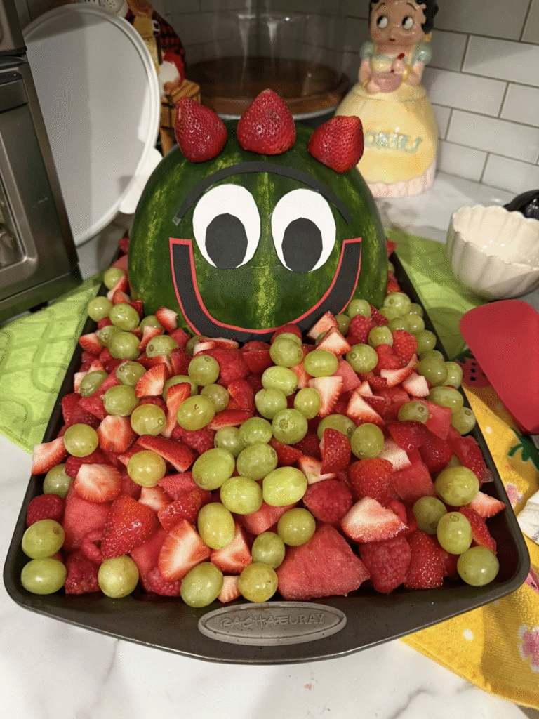 Decorate with bright fruit-shaped items and tropical flowers to create an inviting atmosphere. Set up a fruit-tasting station and organize the Fruit Basket Upset game for interactive fun.