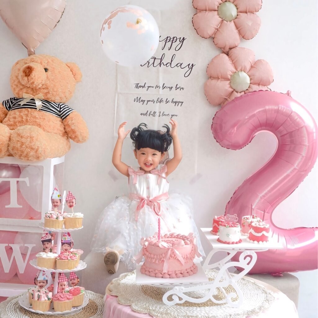 Complete the escapade with themed party favors and pink-tinted treats that'll make this second birthday unforgettable.