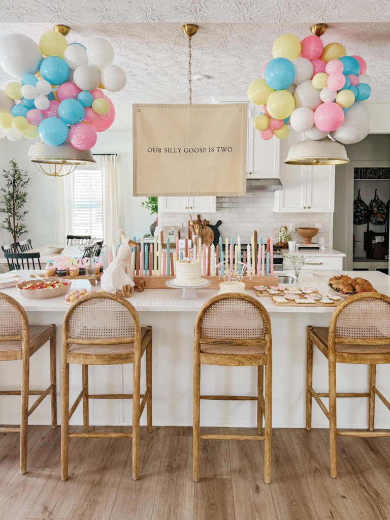 Complete the magical atmosphere with dreamy balloon garlands and take-home favors like plush unicorns.