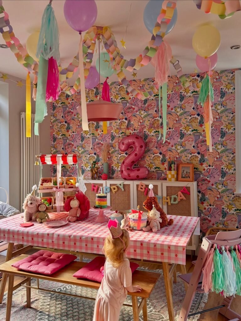 Create a fanciful atmosphere using earthy tones, macramé decorations, and dreamy lanterns. Set up a flower crown-making station where tiny guests can craft their own accessories.