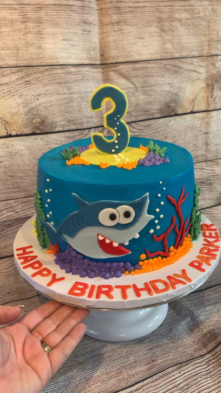 The Baby Shark-themed cake brings the underwater world to life with its bright colors and fun characters. Featuring the Baby Shark family and colorful seaweed, this cake is a great way to celebrate a third birthday in a fun and playful style.