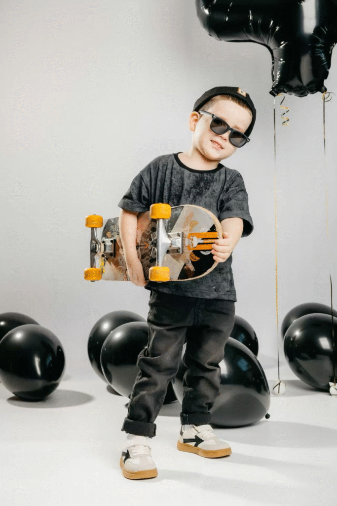 Why we pick this idea: Skateboard adds sporty chic vibes for playful kids.