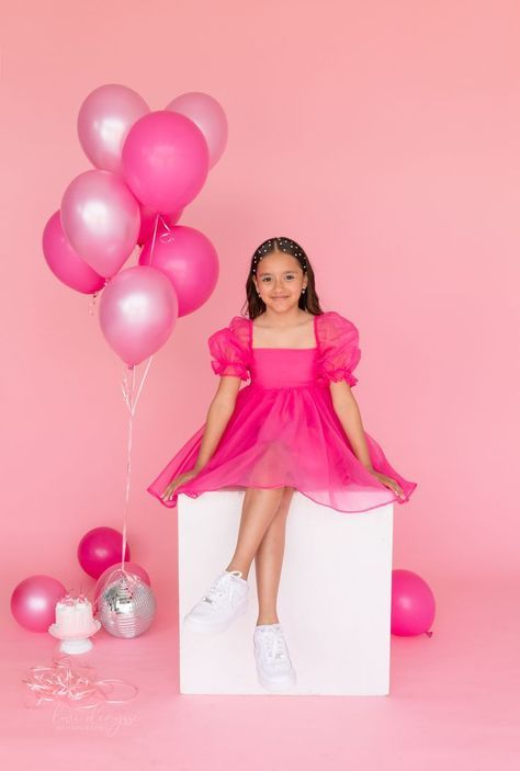 This shoot celebrates everything pink—balloons, outfits, and props.