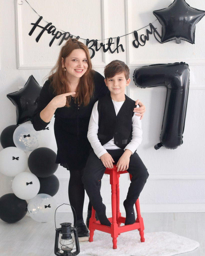This photoshoot uses indoor décor like balloons or themed props for stylish vibes.