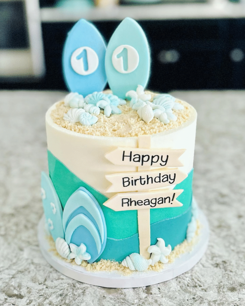 Surf-Inspired Birthday Cake with Fun Beach Elements