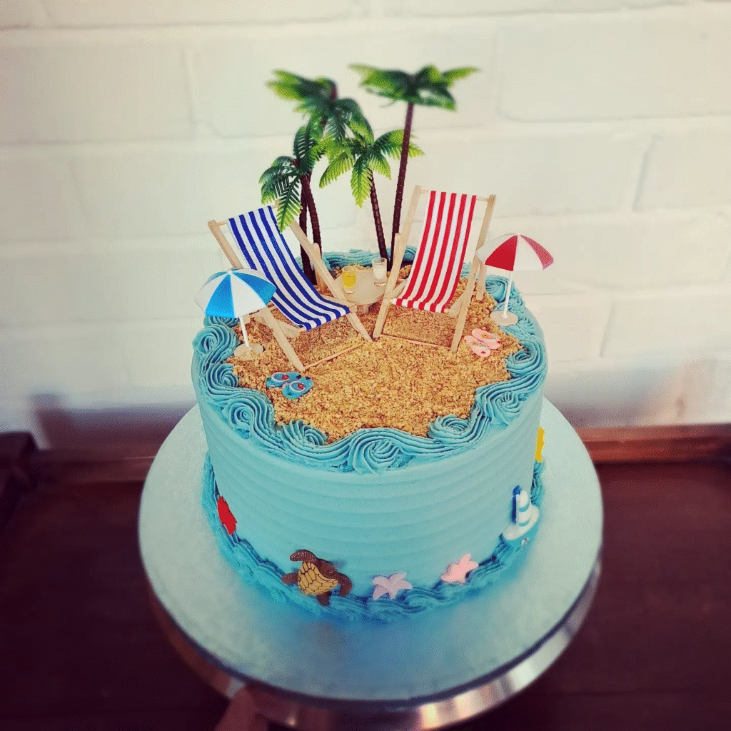 Beach-Themed Cake for a Tropical Birthday Celebration