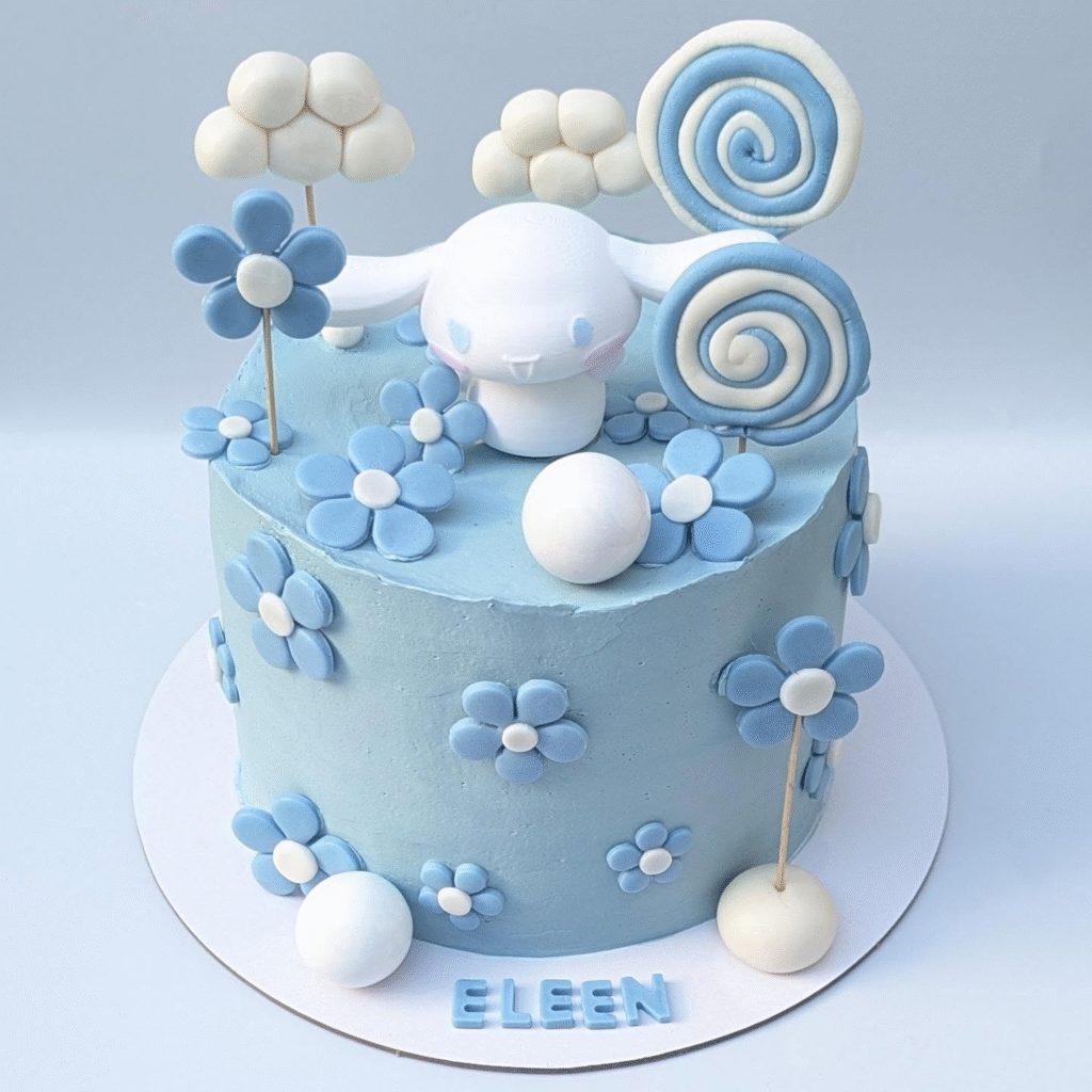 Perfect for a gentle celebration, this cake is ideal for birthdays or any occasion that calls for something cute and charming. The pastel blue and white color scheme gives it a refreshing, dreamy look.