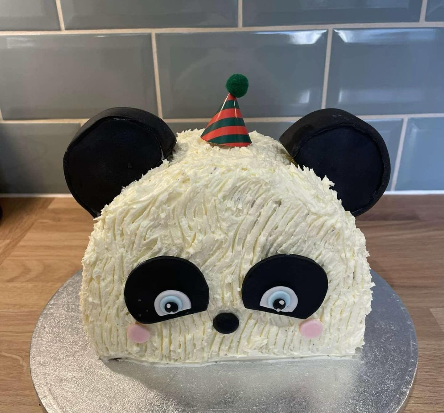 What Makes This Image Stand Out: The piped frosting texture and expressive panda face give the cake a warm, fluffy, and irresistibly cute appeal.