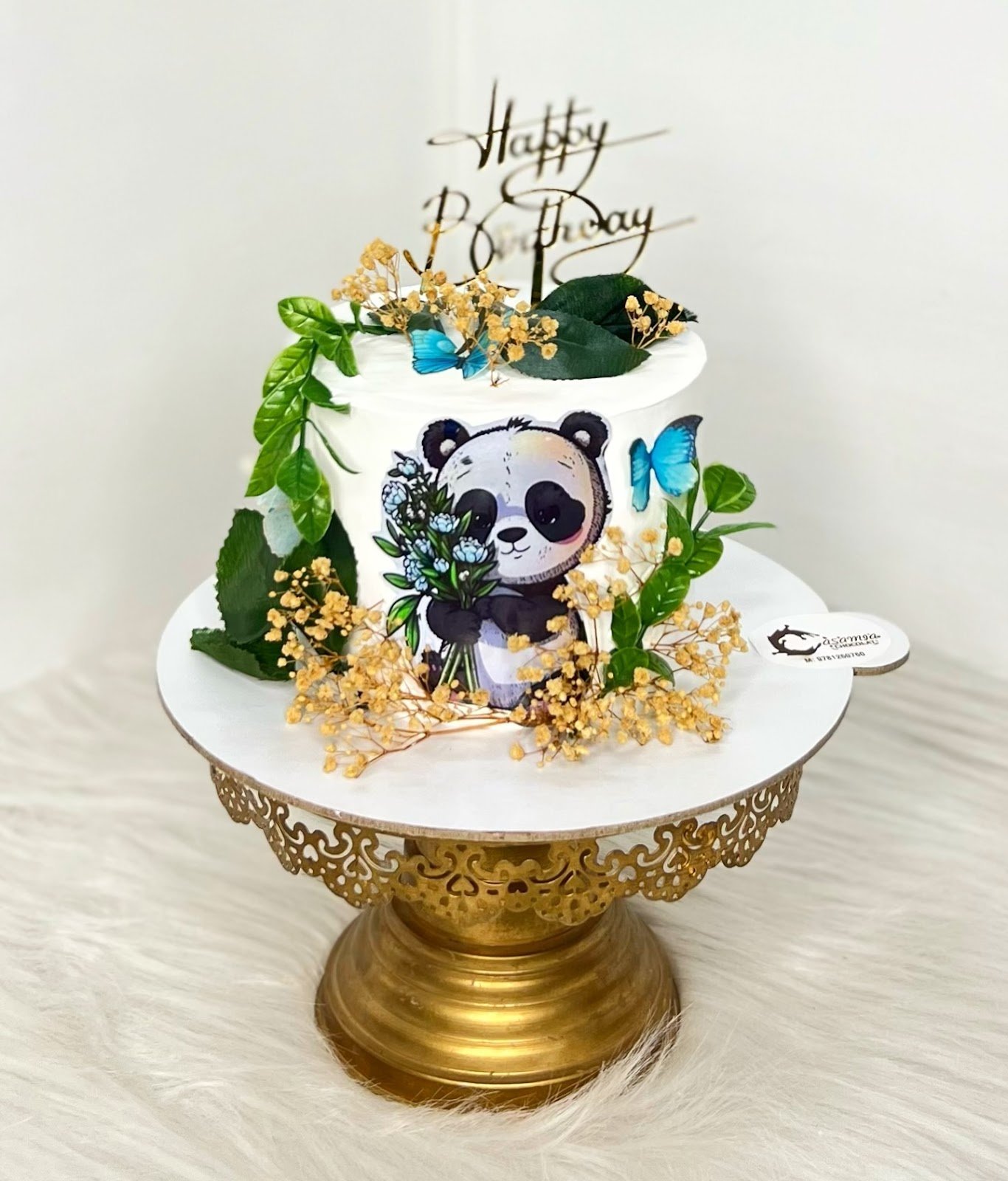 What Makes This Image Stand Out: The unique panda design, paired with luxury-inspired details and vibrant presentation, creates an eye-catching and memorable birthday centerpiece.