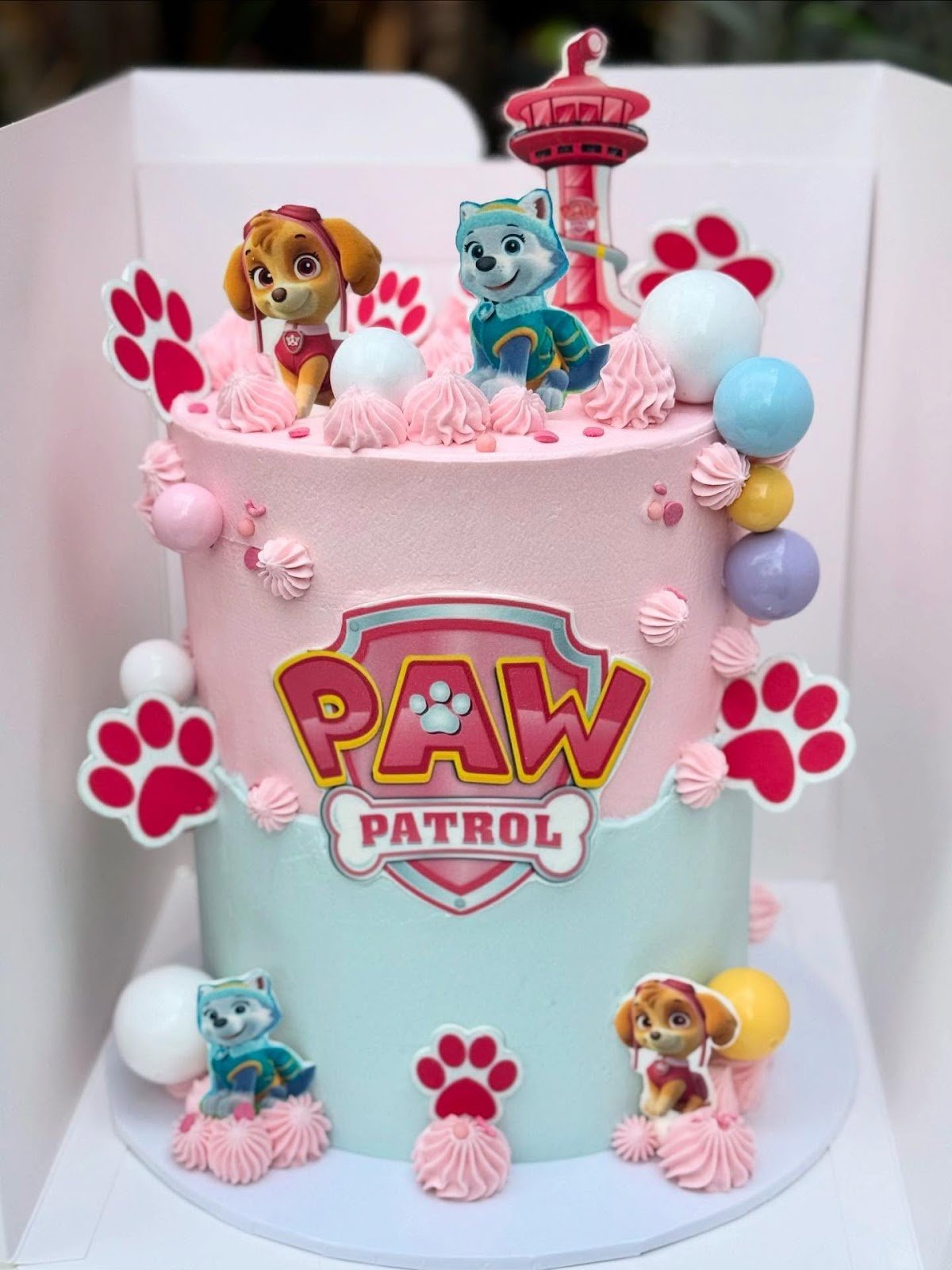 Whimsical Paw Patrol Cake: A Pink and Blue Delight