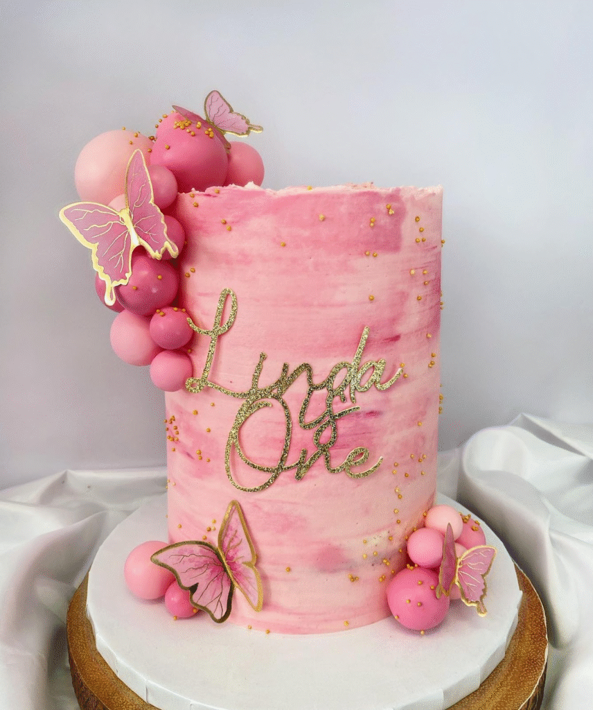 Dreamy Butterfly-Themed Pink First Birthday Cake