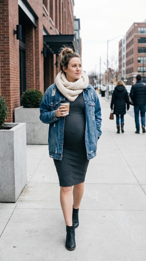 Layer fitted maternity leggings underneath for extra warmth and coverage. Trust me, this combination works whether you’re heading to brunch or an evening dinner party.