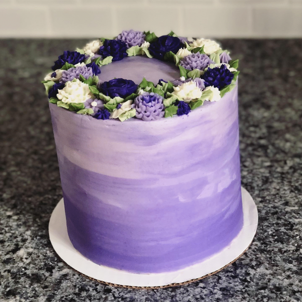 Lavender Ombre Cake with Beautiful Buttercream Flowers