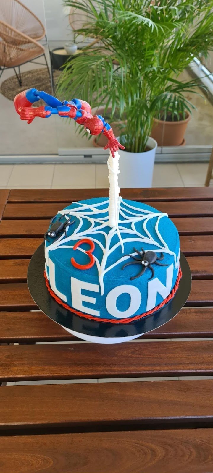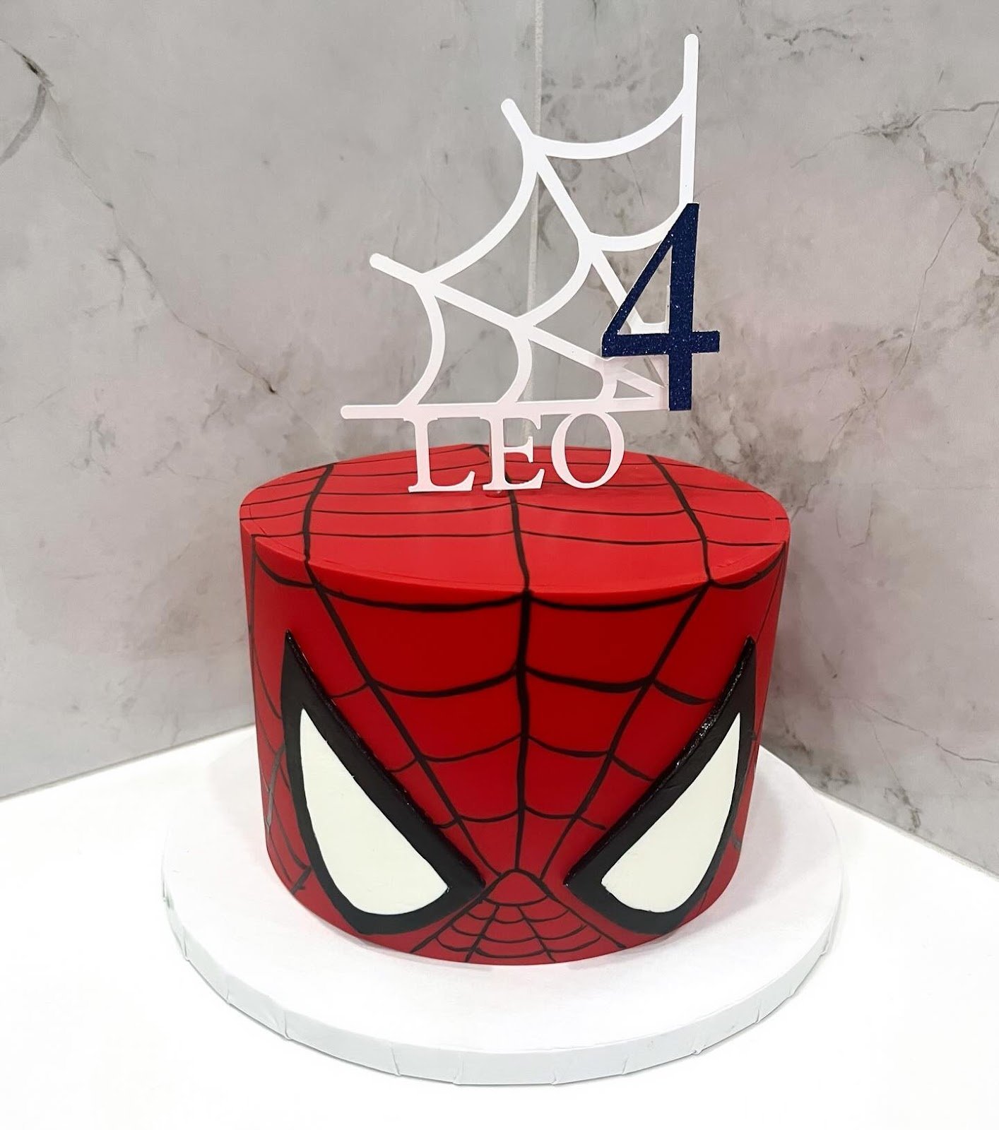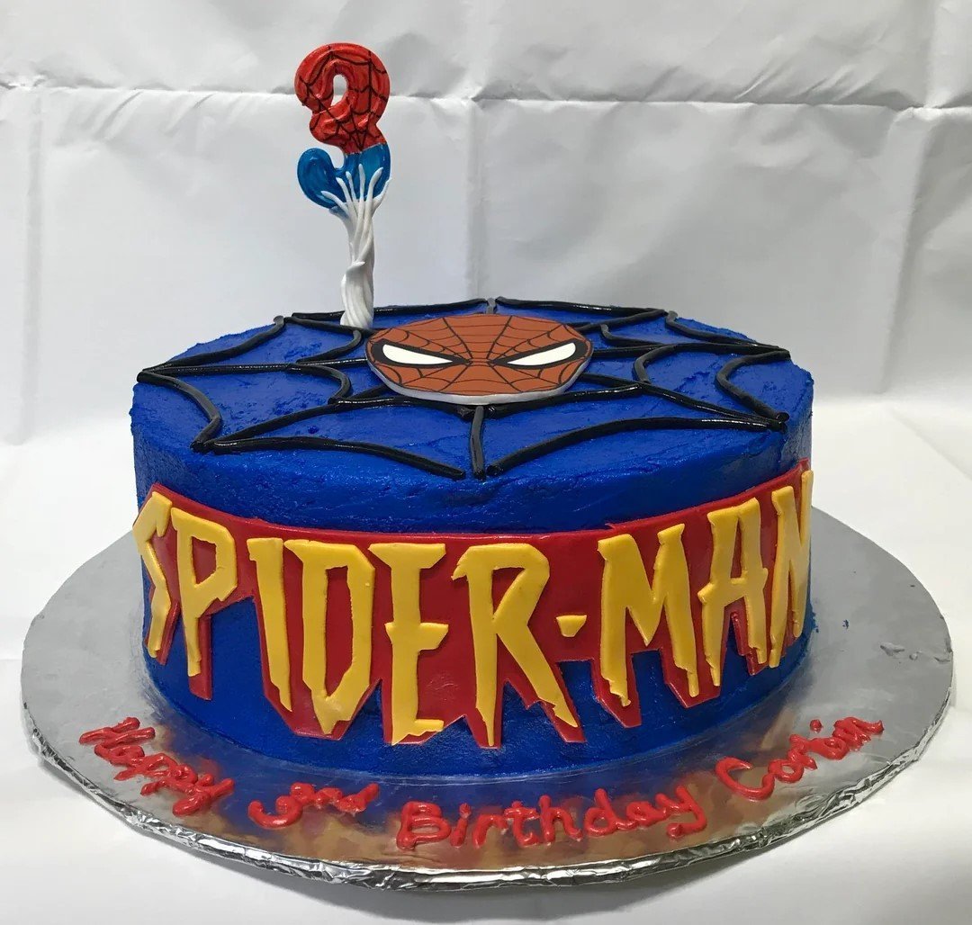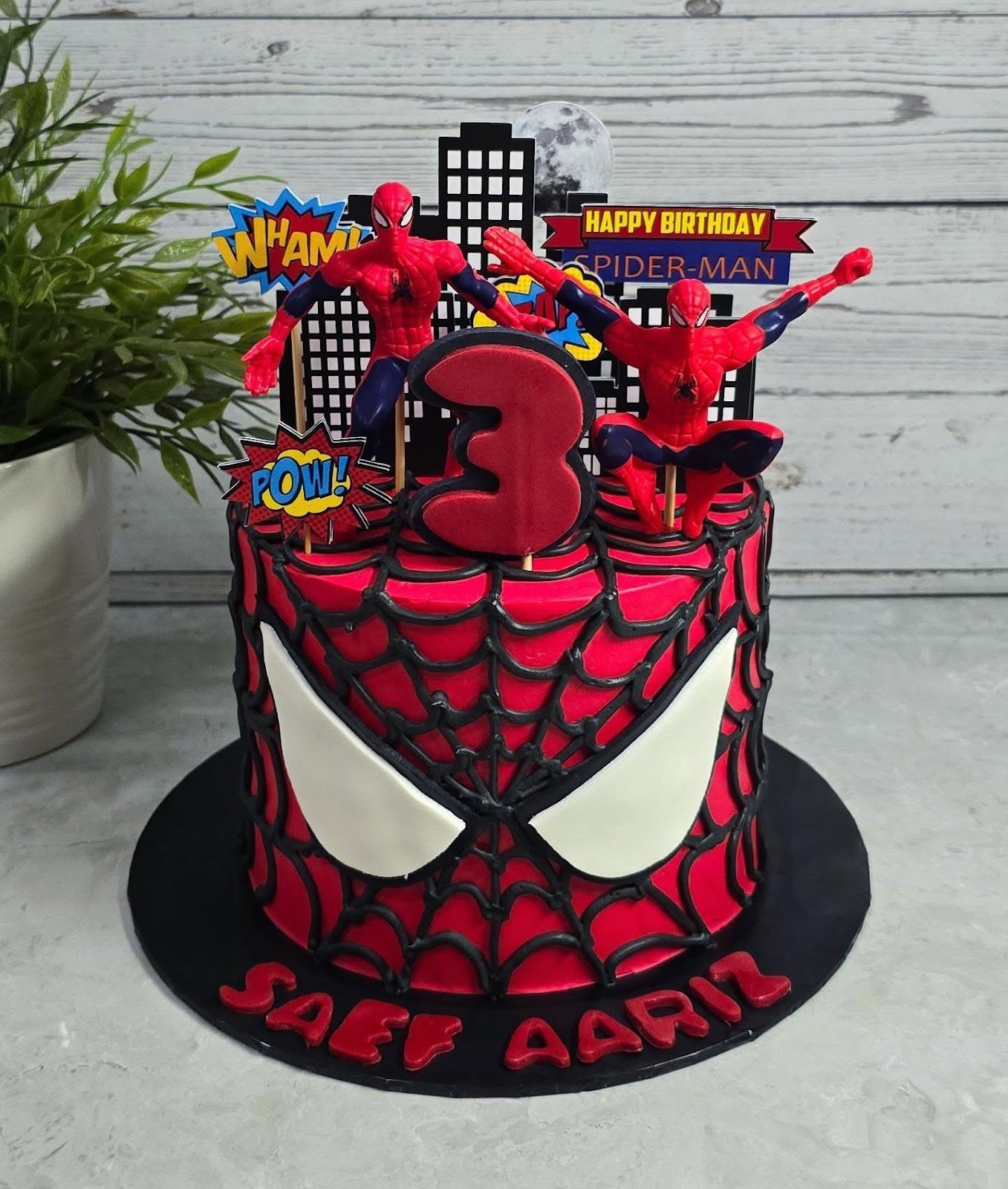 The best part about this cake is how it blends simplicity with superhero flair. The personalized name in the center of the web makes the birthday child feel like the hero of the day, while the scattered web accents around the cake create a playful, comic-inspired vibe. It’s a cake that’s both trendy and exciting, ideal for families who want something unique yet full of character. This design proves that Spider-Man cakes don’t always have to be loud, they can be stylish, cool, and still bring all the superhero fun.
