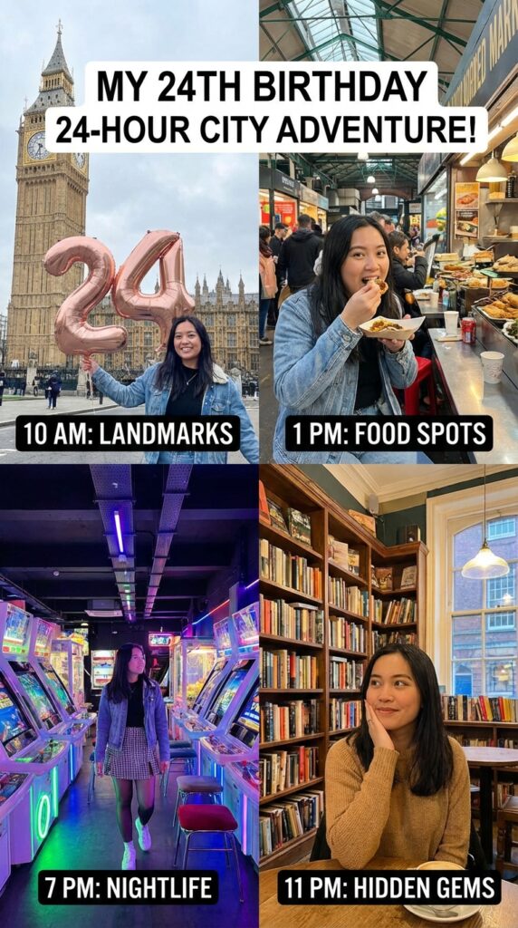Spend some time unearthing local gems, from morning yoga to midnight movies. Hop between rooftop bars, food trucks, and iconic landmarks – your city’s waiting to showcase its best 24 hours yet!