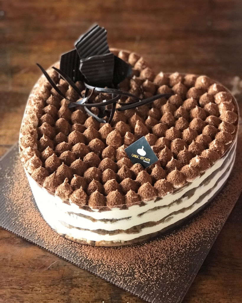 Heart-Shaped Tiramisu Cake with Chocolate Decorations