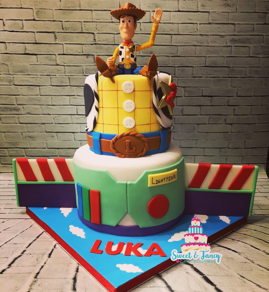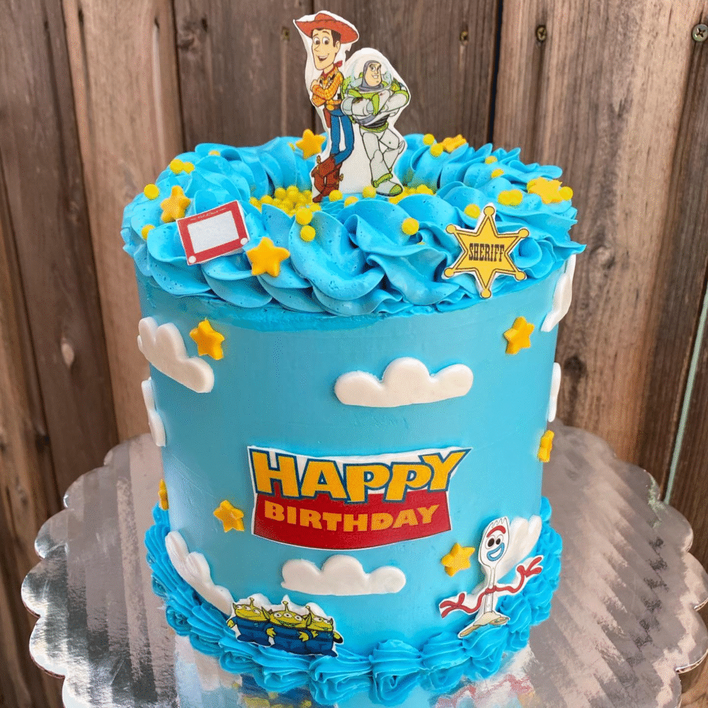 Step into a world of adventure and fun with Toy Story–inspired birthday cakes that bring instant joy to any celebration. Imagine Woody, Buzz Lightyear, and their playful friends coming to life through colorful designs, edible figures, and themed decorations. Each cake tells a story of excitement, whether it’s a galaxy of stars, a cowboy hat, or a playful toy box brought to life.