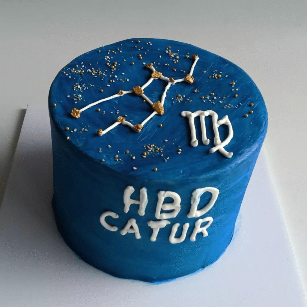 Boldly piped with “HBD CATUR,” the cake balances personal touch with astrological elegance. With its cosmic theme and refined detailing, this cake is ideal for stargazers, zodiac lovers, or anyone celebrating under Virgo’s thoughtful and grounded sign.